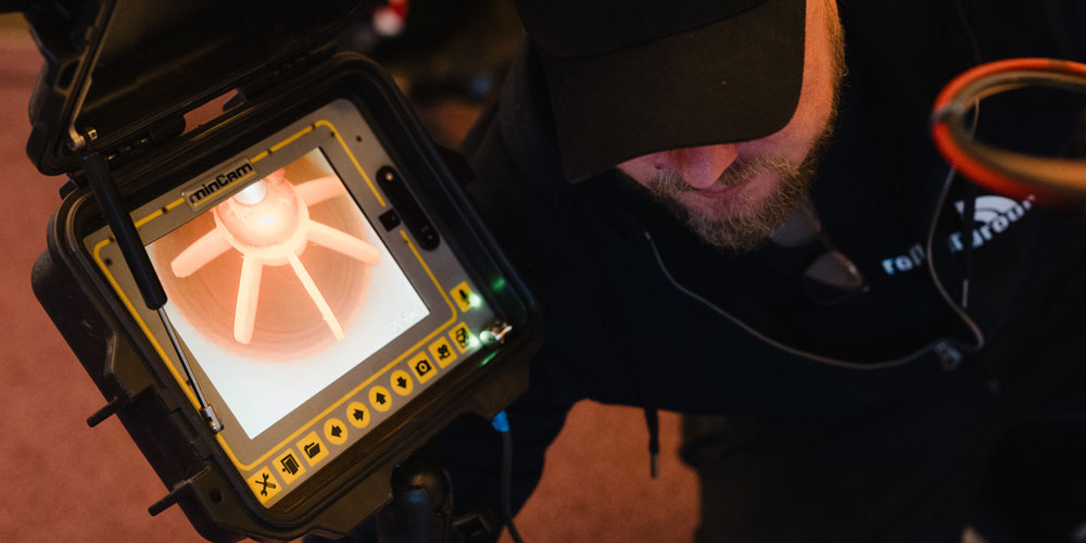 Mittels Kameratechnik erfolgt eine detaillierte Untersuchung der Abwasserrohre. Schäden, Ablagerungen und Undichtigkeiten werden punktgenau sichtbar.